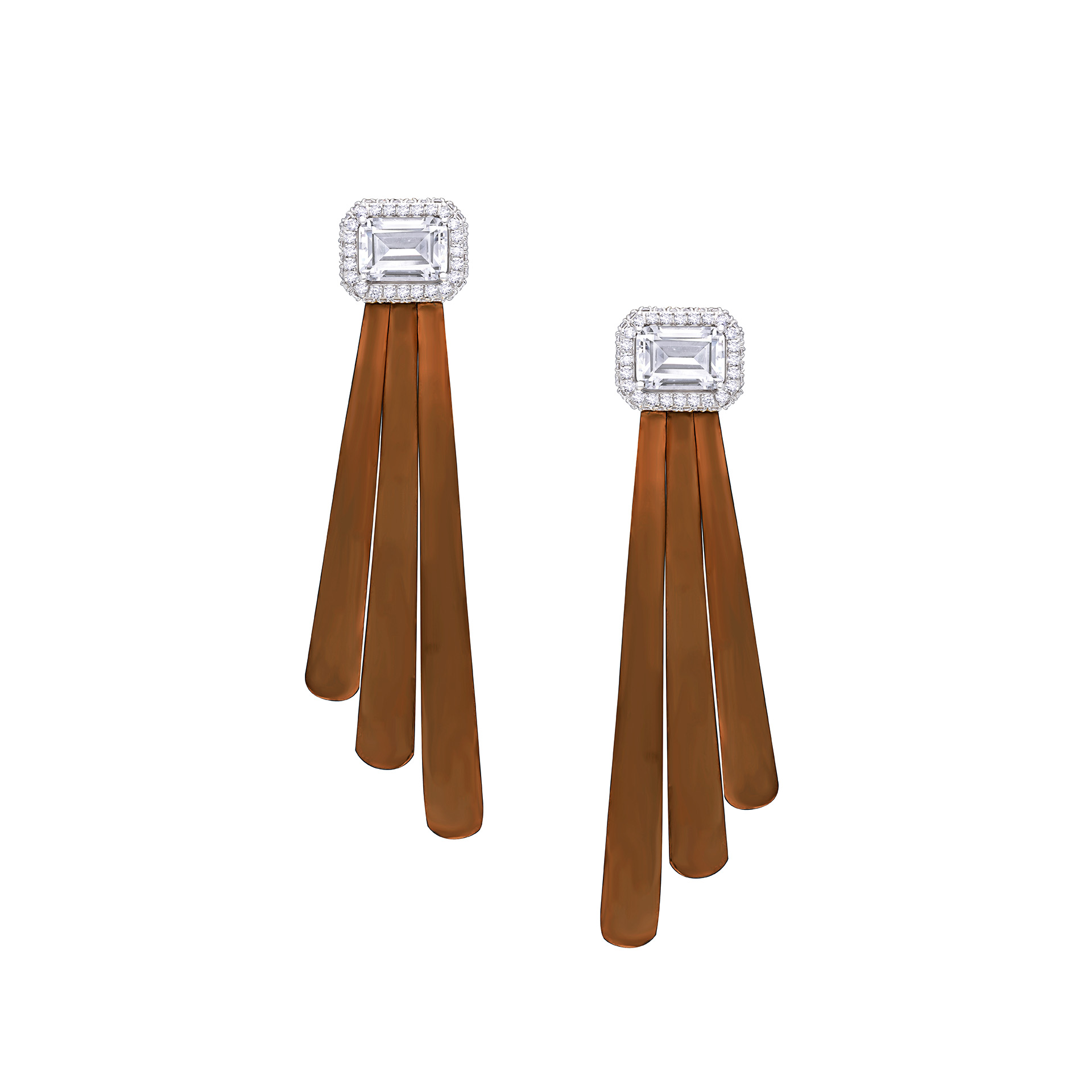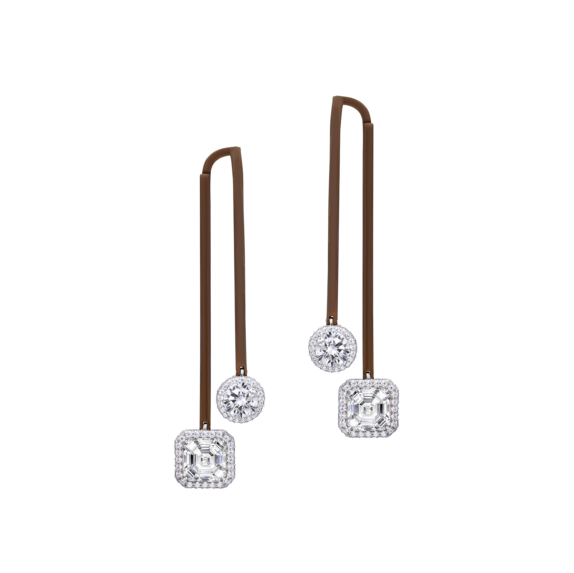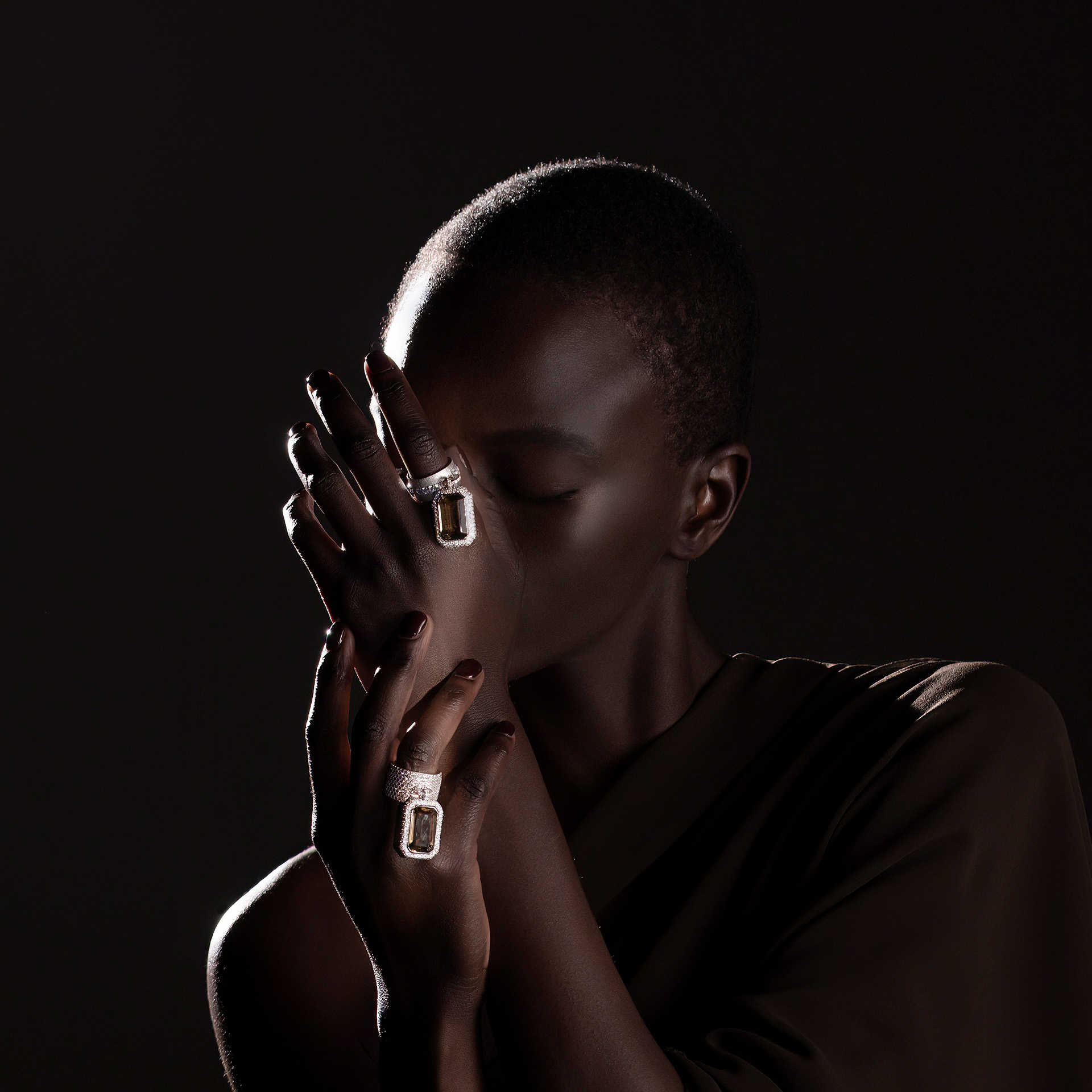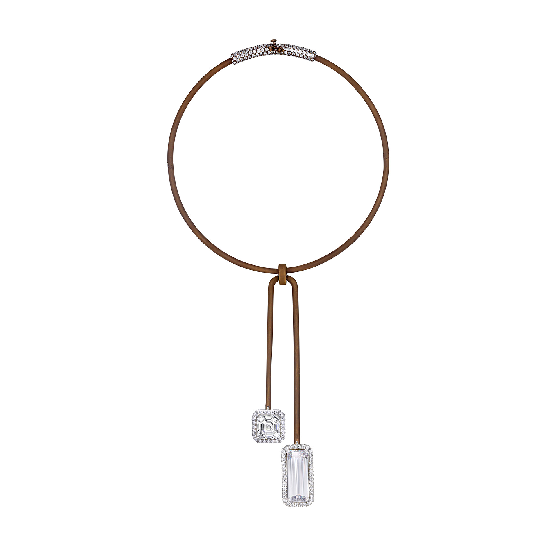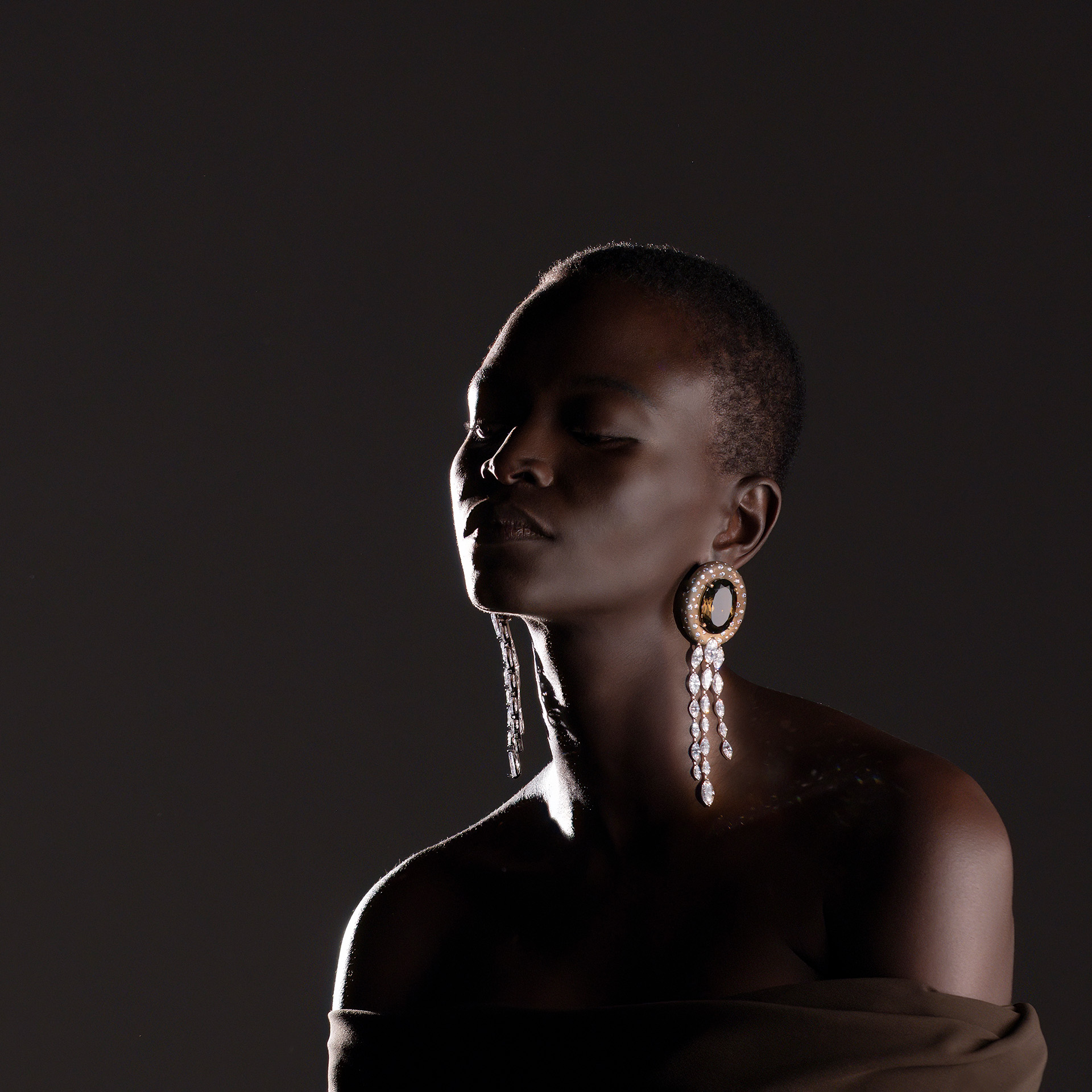 An unlimited dream of jewellery sculptures with infinite dimensions. Almost real stones for the illusion of limitless design. The craftsmanship of High Jewellery creates pieces of Haute Couture. The act of drawing no longer worries about constraints, creating a play between theatricality and contemporaneity. The style is confident, sophisticated, and timeless. Exceptional sets of jewellery.