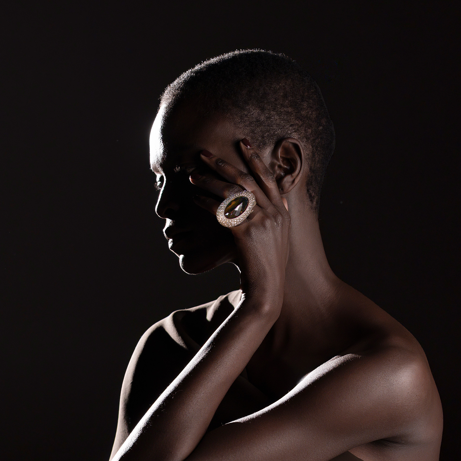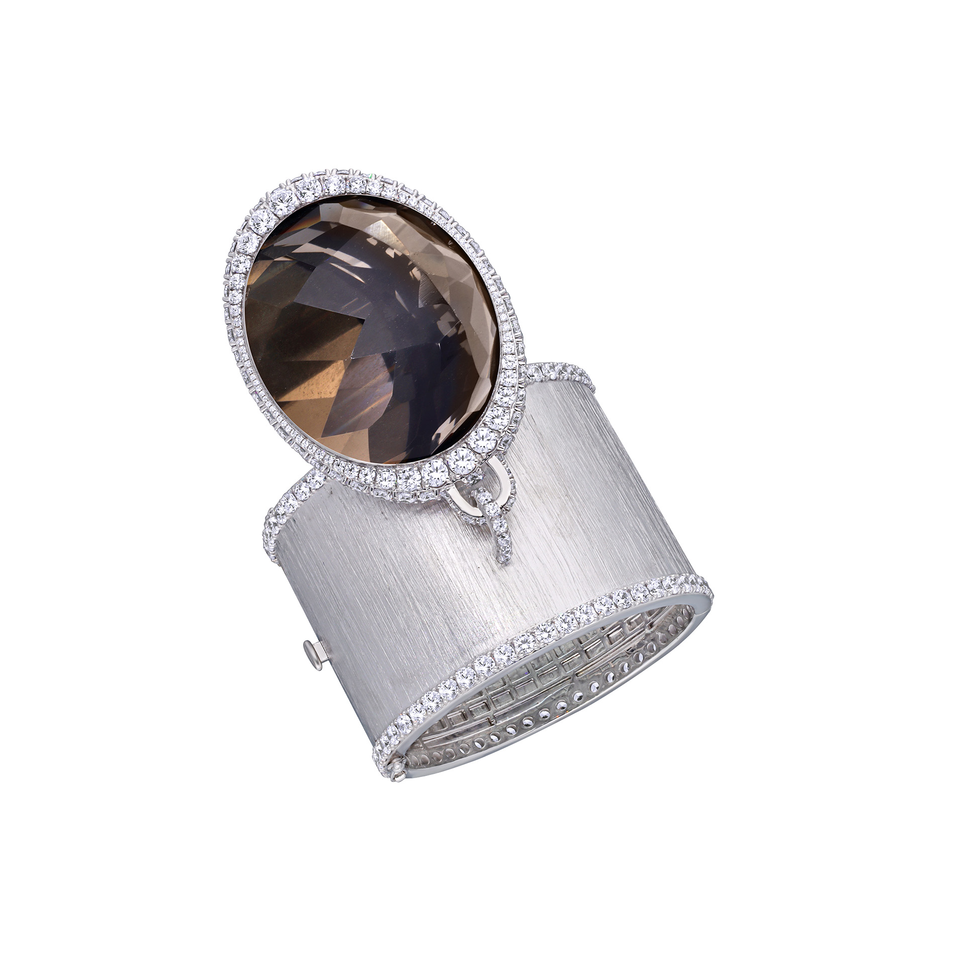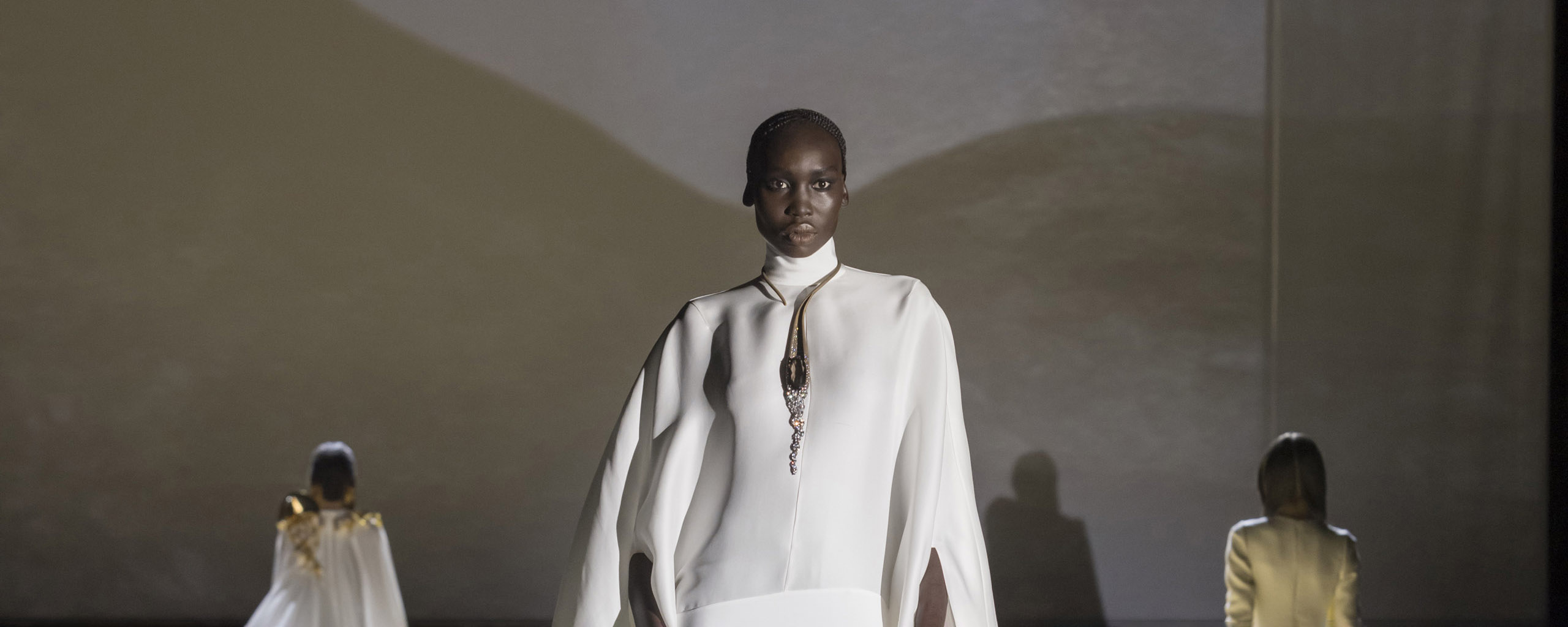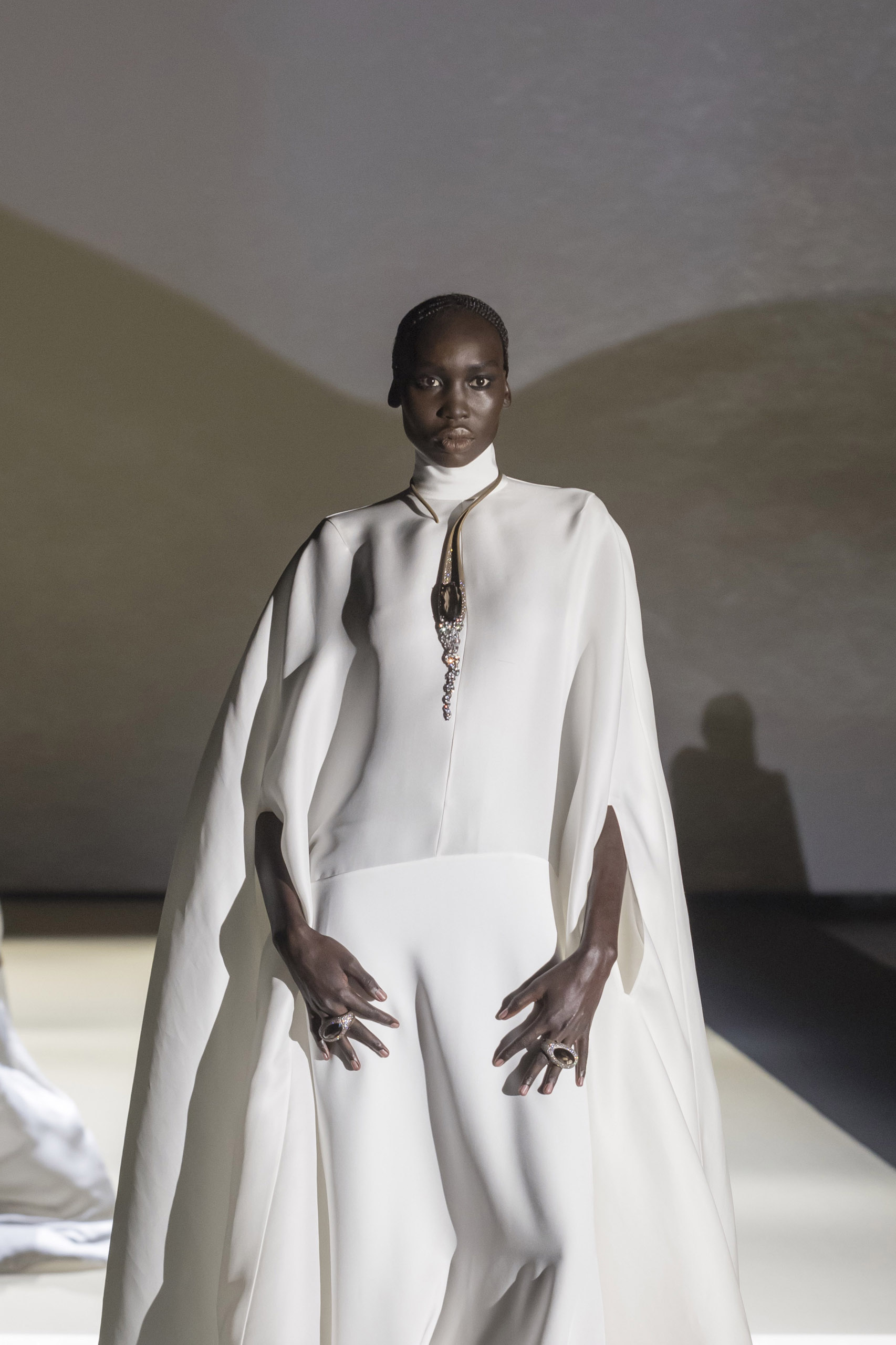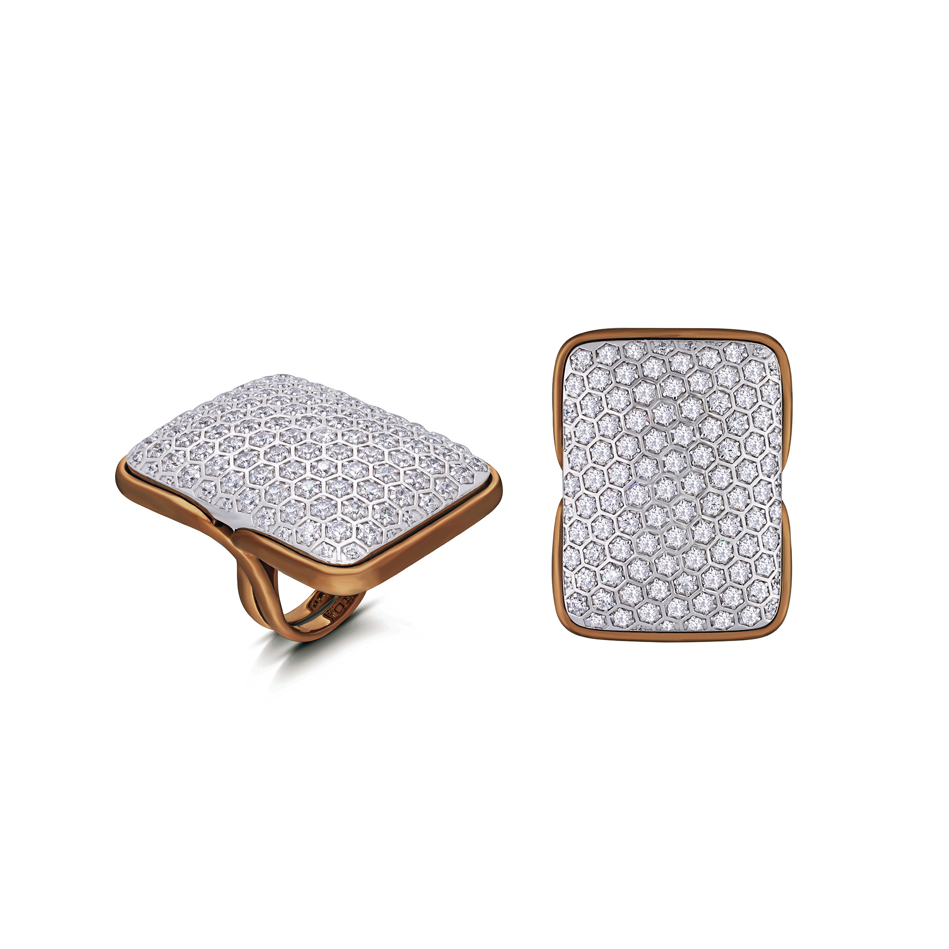 An unlimited dream of jewellery sculptures with infinite dimensions. Almost real stones for the illusion of limitless design. The craftsmanship of High Jewellery creates pieces of Haute Couture. The act of drawing no longer worries about constraints, creating a play between theatricality and contemporaneity. The style is confident, sophisticated, and timeless. Exceptional sets of jewellery.